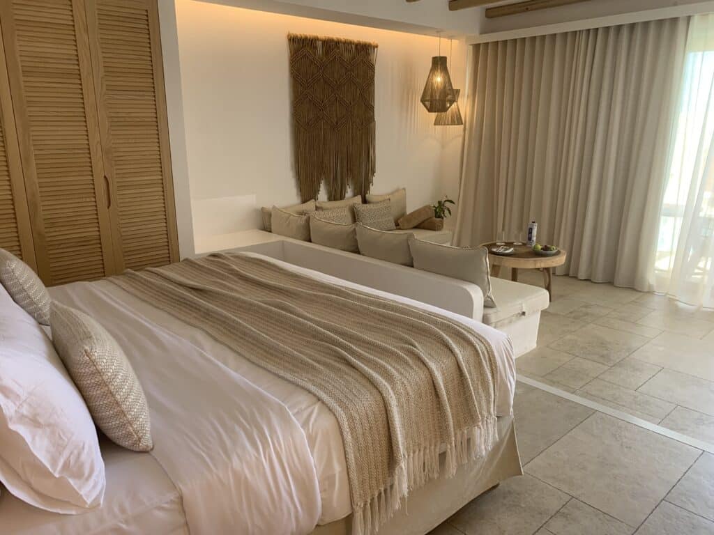 Matkabudjetti ei ole koskaan riittänyt hotellihuoneeseen, jossa olisi oma uima-allas. Eikä se riittänyt nytkään. Tyydyin huoneeseen merinäköalalla ja parvekkeella.